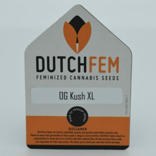 Die feminisierten Samen von Dutchfem OG Kush XL ergeben eine ertragreiche Cannabissorte mit klassischen OG Kush-Eigenschaften, einem scharfen, erdigen Aroma und einem starken Stoned-Indica-Effekt gepaart mit tiefer Entspannung.