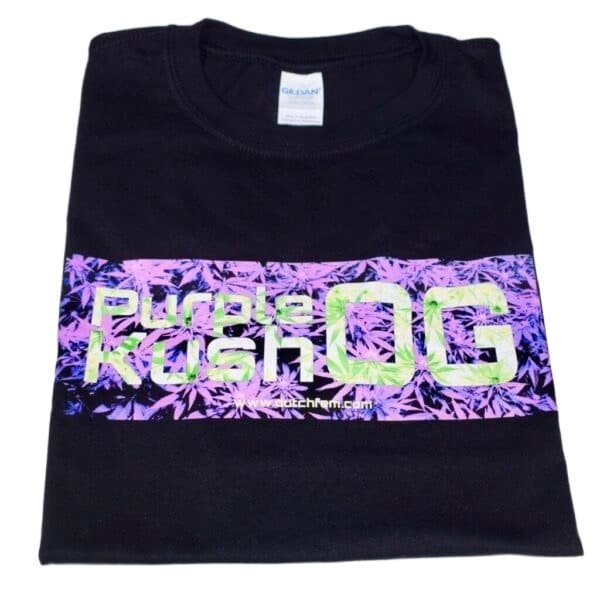 Μαύρο μπλουζάκι Dutchfem unisex Purple OG Kush. Αυτό το μαύρο κοντομάνικο μπλουζάκι unisex είναι η τέλεια προσθήκη σε οποιαδήποτε γκαρνταρόμπα για τους φίλους της Dutchfem και του OG Kush. Από 100% οργανικό βαμβάκι που δεν θα βλάψει το περιβάλλον και σας εξασφαλίζει πλήρη άνεση. Διατίθεται σε S, M, L και XL.
