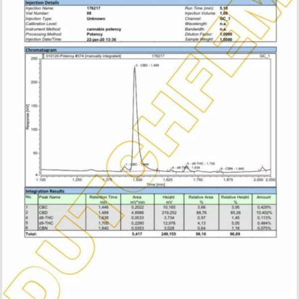 - Υψηλή CBD (έως 12%) και χαμηλή THC (0,2%) για θεραπευτικά οφέλη